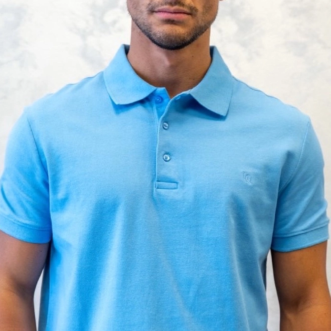 Muška majica od 100% pamuka sa kragnom. Kratak rukav, regular fit. Dostupno u više veličina. Model nosi veličinu M.